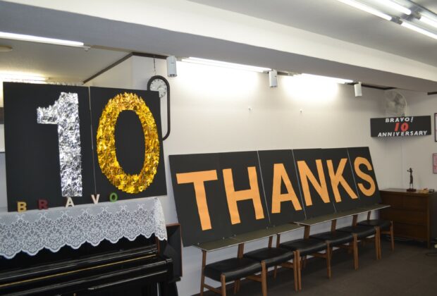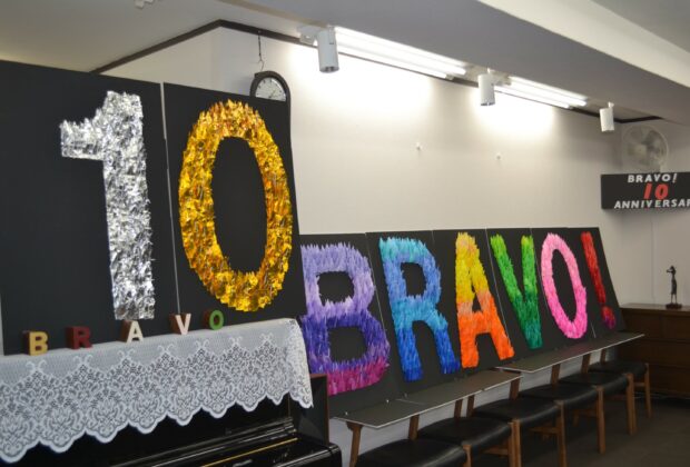 動画ギャラリー 2022.08.10 8月のネームプレート作成動画PART1アップしました! 2022.08.10 8月のネームプレート作成動画PART2アップしました! 2023.04.18 9月のネームプレート作成動画アップしました! 2024.09.30 2024年9月のネームプレート作成動画アップしました! フォトギャラリー 2022.10.19 2022.10.19 10周年イベント開催しました! お客様が作られた折り鶴です! お見事!まさにBRAVO!な仕上がりです。 お客様がひとつひとつ丁寧に折って頂きました 得意な方も苦手な方も… 声掛けながら… 集中して… 丁寧に… 黙々と… 出来上がりました! 2024.12.07 今年もBravo!にX’masがやってきた! みごとなツリー 電飾が綺麗! 豆ツリーも 沢山の靴下がかわいい! 今年も『歓喜の歌』をドイツ語で歌います♪